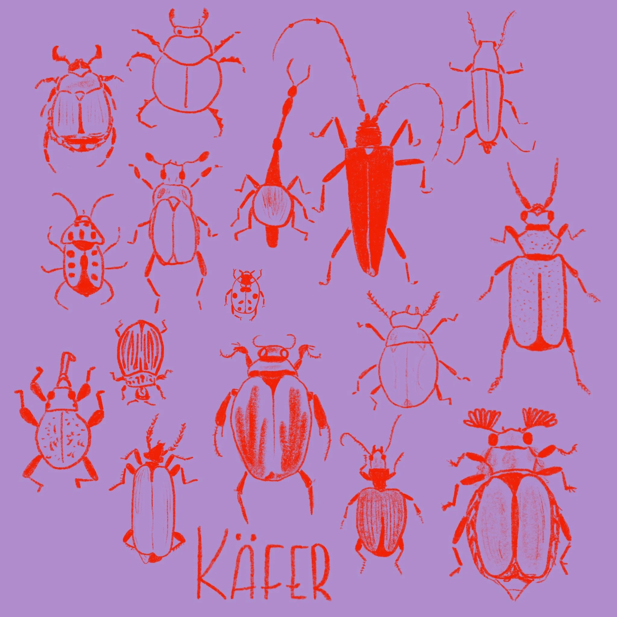 Analog arbeite ich mit unterschiedlichsten Materialien je nach Laune und Projekt: Gouache, Acryl, Wasserfarben, Buntstifte, Ölkreide, Pastellkreise, Tinte, Kohle, Marker, …